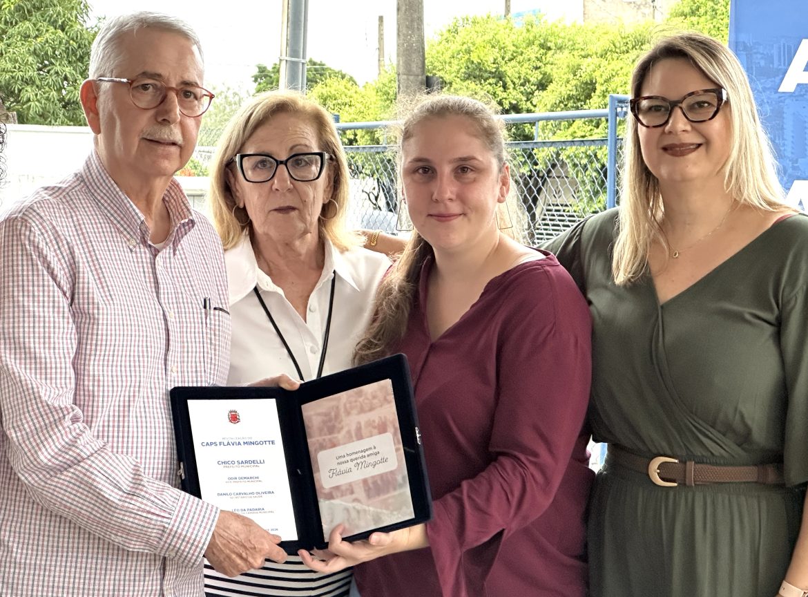 “Estamos aqui para honrar a memória da Flávia, que foi um exemplo de resiliência, fé e coragem. Ela tinha o dom de acolher a todos com uma alma leve, transformando dedicação em cuidado real e deixando um legado de amor à vida por onde passou. Ver o CAPS, lugar que ela tanto se orgulhou em trabalhar, levar o seu nome é um lembrete do tipo de profissional e ser humano que devemos buscar ser. Agradeço imensamente ao prefeito Chico Sardelli e a toda a equipe da Saúde pelo respeito e por eternizarem a trajetória da minha filha, que seguirá sendo um motivo de inspiração para todos nós”, afirmou Fátima Mingotte, mãe da Flávia.